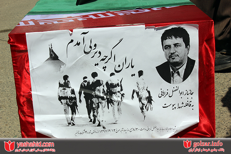 به گزارش یاشهید ، صبح امروز پیکر مطهر جانباز شهید ابوالفضل گونه فراهانی با حضور اقشارمختلف مردم و خانواده های معظم شهدا و ایثارگران طی مراسم باشکوهی از بلوار ابوذر تهران تشییع و در قطعه 50 گلزار شهدای بهشت زهرای تهران در جوار همرزمانش آرام گرفت.