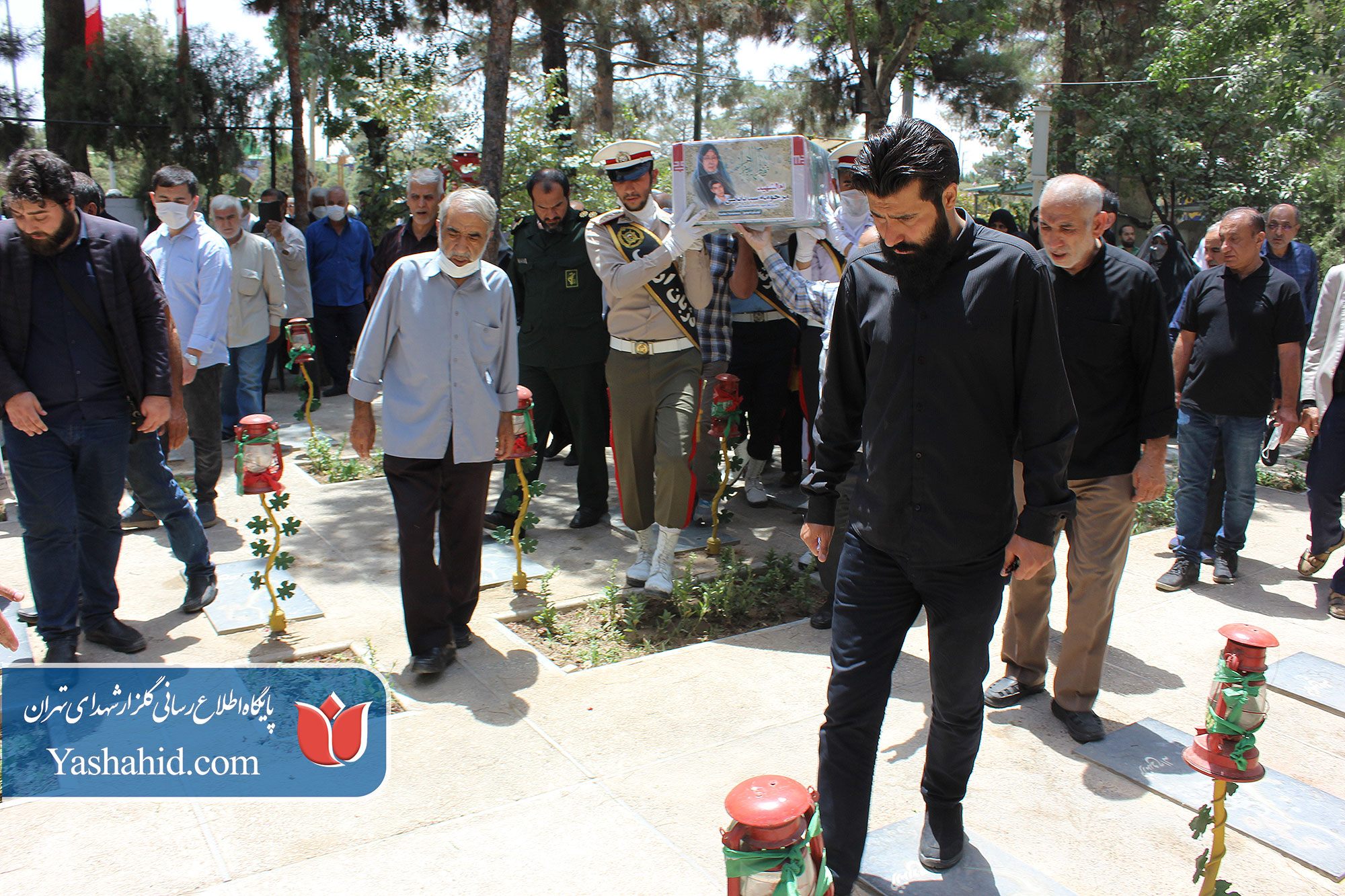 پیکر مطهر این مادر شهید با بدرقه مردم و مسئولان در قطعه ۴۵ بهشت زهرا در جوار همسرش به خاک سپرده شد.
